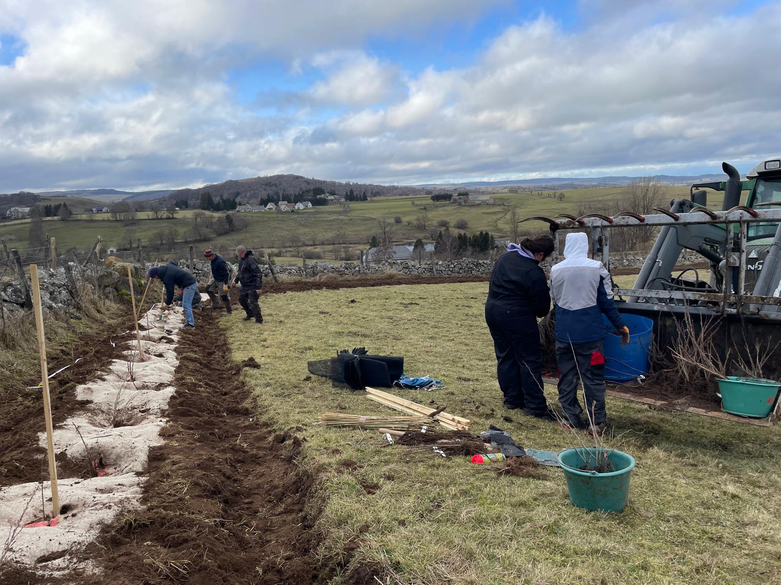 Grâce à des conditions météorologiques favorables, le COPAGE a encadré deux chantiers de plantation collectifs sur des exploitations agricoles situées sur l’Aubrac, avec une classe de BTS production animales du Lycée agricole de Terre Nouvelle. Les étudiants ont ainsi bénéficié d’une intervention en classe sur les haies champêtres et d’une mise en pratique de ce qu’ils avaient appris.